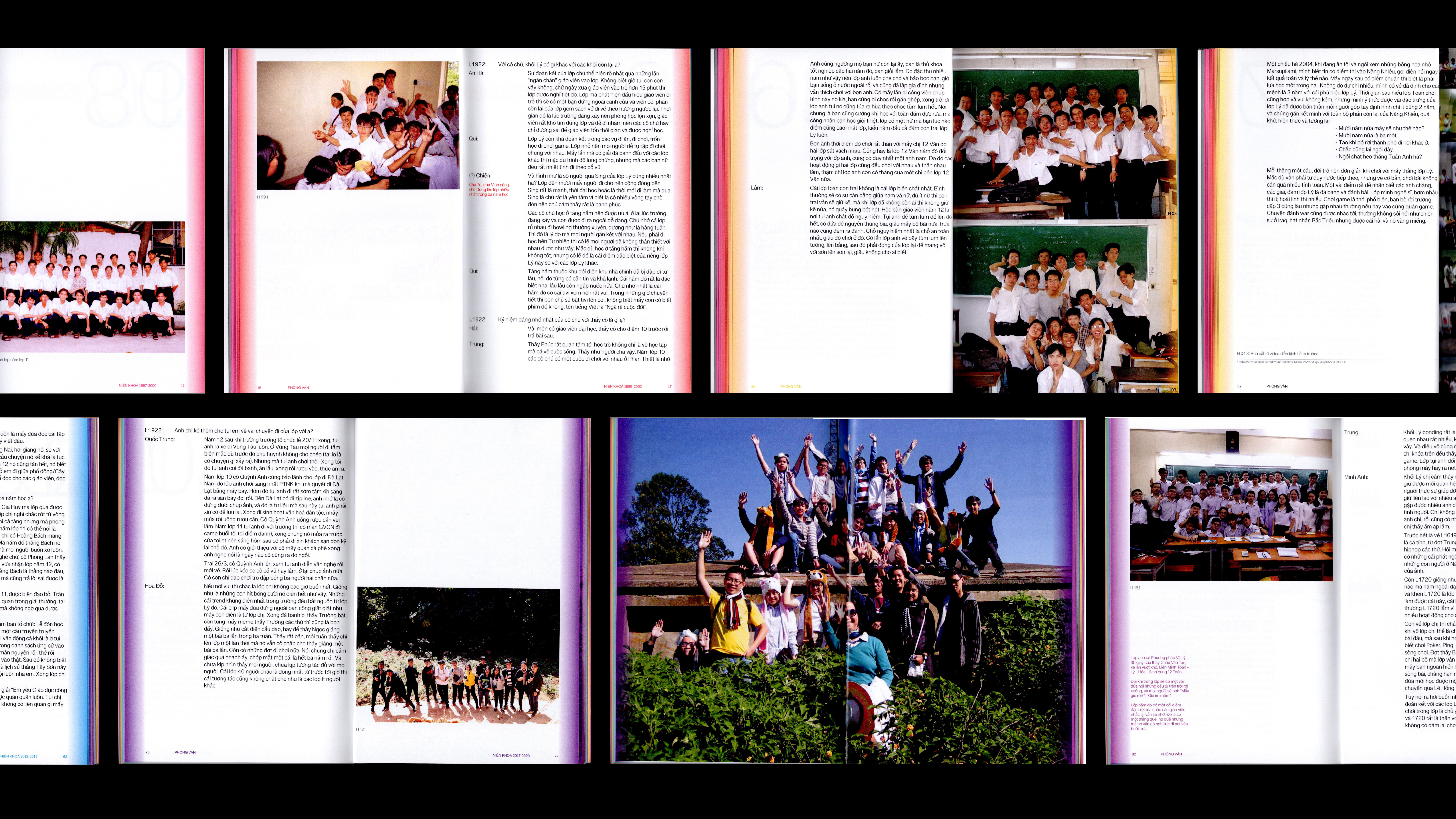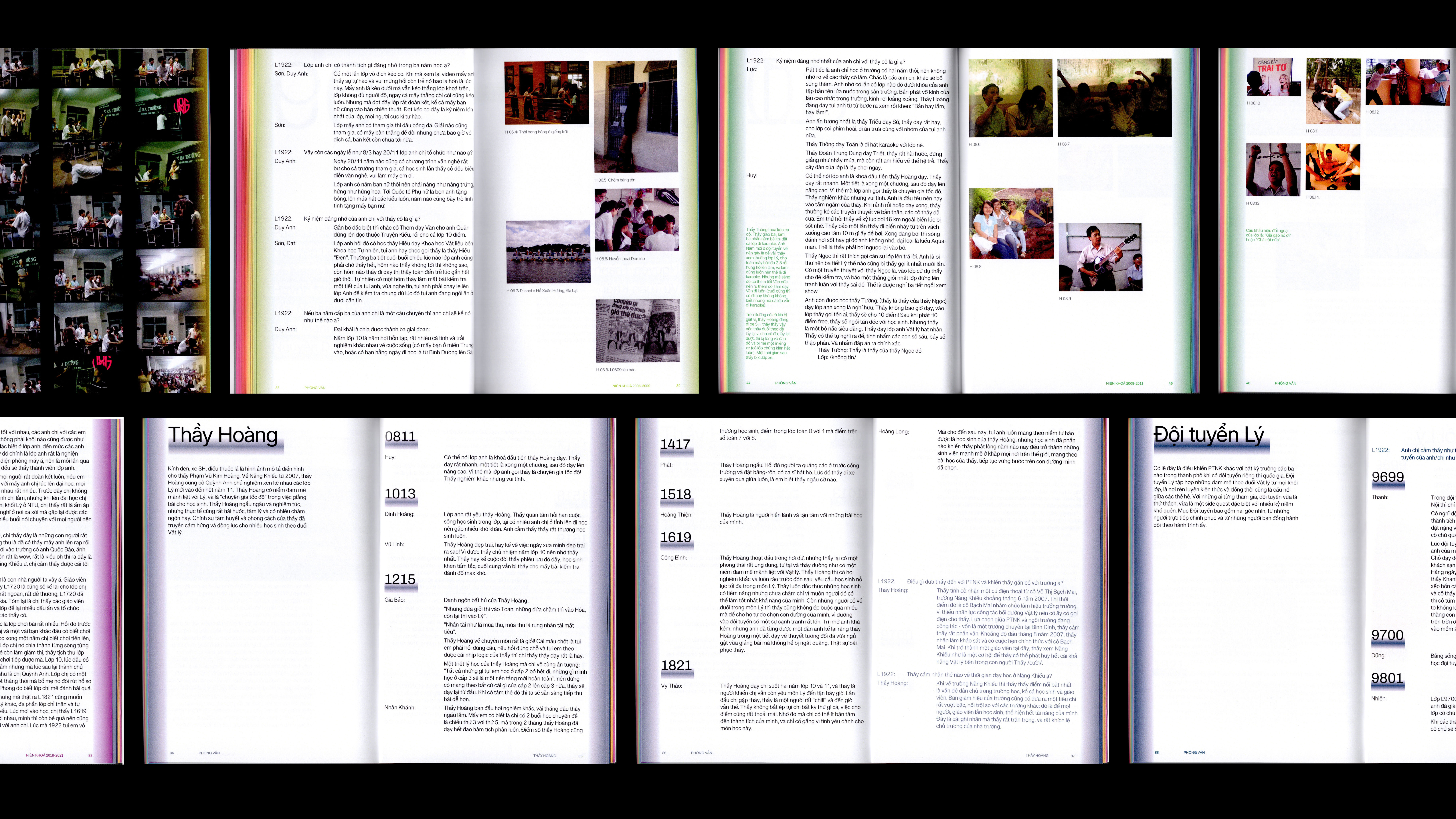 Inspired by the light spectrum, the design assigns one distinct color to each of the 24 academic years. Each hue represents a different wavelength, turning the book into a visual timeline of voices across time.